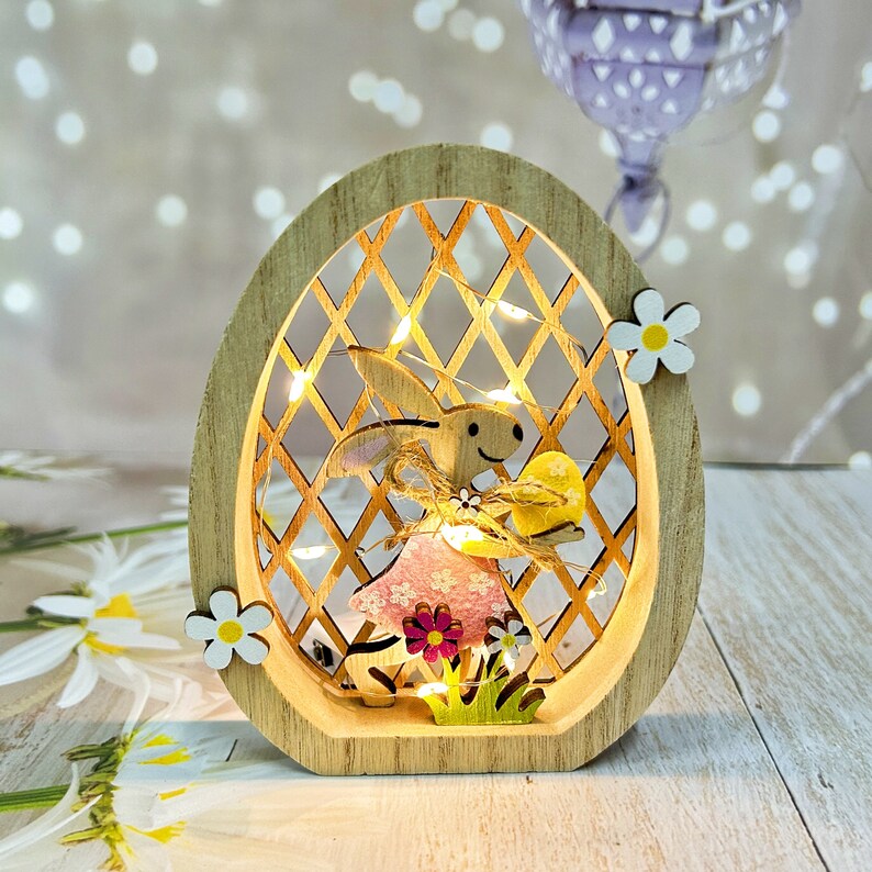 Whether you're hosting an Easter brunch or simply want to infuse your home with seasonal charm, this wooden ornament adds a festive touch to any room, creating a welcoming and joyful atmosphere.