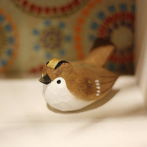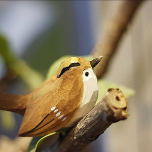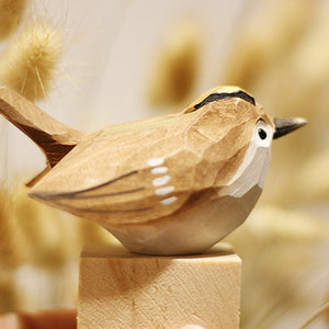 This exquisite hand-carved wooden bird is the perfect addition to any bookshelf or home decor collection. Crafted with care and attention to detail, this Regulus Satrapa figurine is a timeless masterpiece of wood carving artistry. The intricate details of the bird's feathers, beak, and feet reflect the skilled craftsmanship and dedication of the artisan who painstakingly created it. These bird ornaments make a perfect gift for bird-lovers or anyone who appreciates the beauty of handmade wooden decor. Standing tall and proud, this bird figurine is a stunning tribute to the elegance and grace of nature. Add this piece to your home today and experience the joy of owning a true work of art.