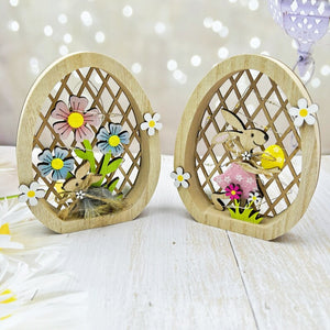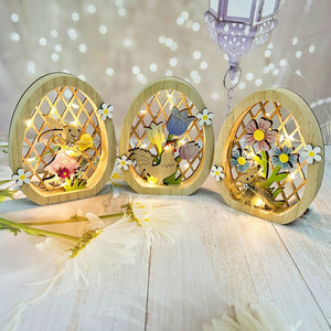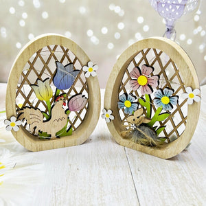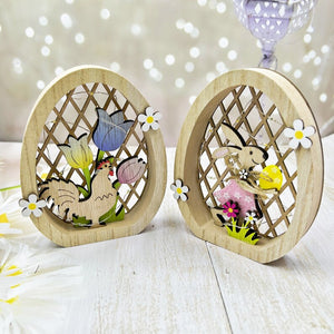 Easter Wooden Bunny/Chicken - a creative 3D hollow-carved wooden decoration that adds a charming touch to your Easter celebrations. This intricately crafted piece is not only a delightful Easter decoration but also makes for a unique and thoughtful gift for the spring season.