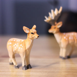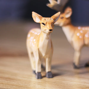 Introducing our stunning handmade wooden deer figurine, intricately crafted using traditional wood carving techniques for a unique and exquisite finish. Perfect for bookshelf decor or as a striking addition to any interior theme, our deer ornament features an intricate design and rich natural hues that beautifully complement any home decor. Ideal as a deer gift for those passionate about wildlife, this hand carved sika deer figurine is guaranteed to elevate any living space with its statement presence and fine craftsmanship. Treat yourself or your loved ones to the charming beauty of our handmade wooden deer today!