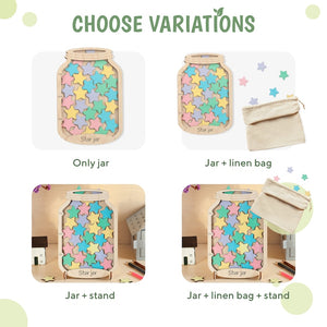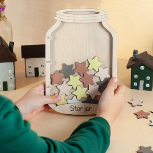 Encouraging positive behavior is made delightful with this ingenious approach! As kid's fill the jar with tokens, they inch closer to earning a well-deserved special reward. These beautifully crafted jars are skillfully assembled from birch wood and crystal-clear acrylic, thoughtfully paired with a sturdy stand and a collection of vibrant wooden tokens.