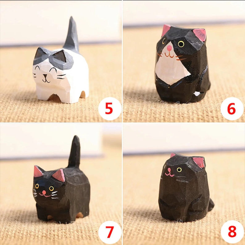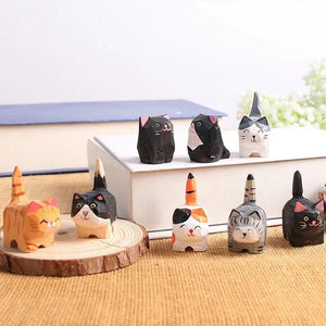 Hand Carving Wooden Cat Sculpture