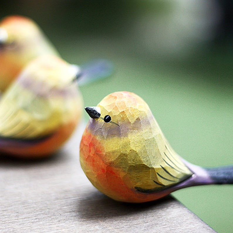 Introducing our exquisitely crafted wooden bird figurines, handmade by skilled artisans using the traditional art of woodcarving. Each bird is intricately carved by hand, bringing a touch of natural beauty and elegance to your bookshelf decor or home decor. These beautiful birds are perfect for bird ornaments, birds gifts, or as a centerpiece in any bird lover's collection. This particular bird is the Leptopoecile Sophiae, a rare and majestic species found in the high altitudes of Asia. Make a statement with our hand-carved wooden bird figurines, celebrating the beauty of nature in every detail.