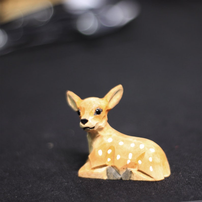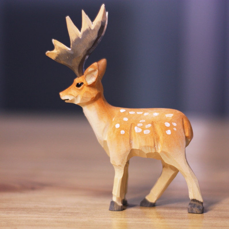 Introducing our stunning handmade wooden deer figurine, intricately crafted using traditional wood carving techniques for a unique and exquisite finish. Perfect for bookshelf decor or as a striking addition to any interior theme, our deer ornament features an intricate design and rich natural hues that beautifully complement any home decor. Ideal as a deer gift for those passionate about wildlife, this hand carved sika deer figurine is guaranteed to elevate any living space with its statement presence and fine craftsmanship. Treat yourself or your loved ones to the charming beauty of our handmade wooden deer today!