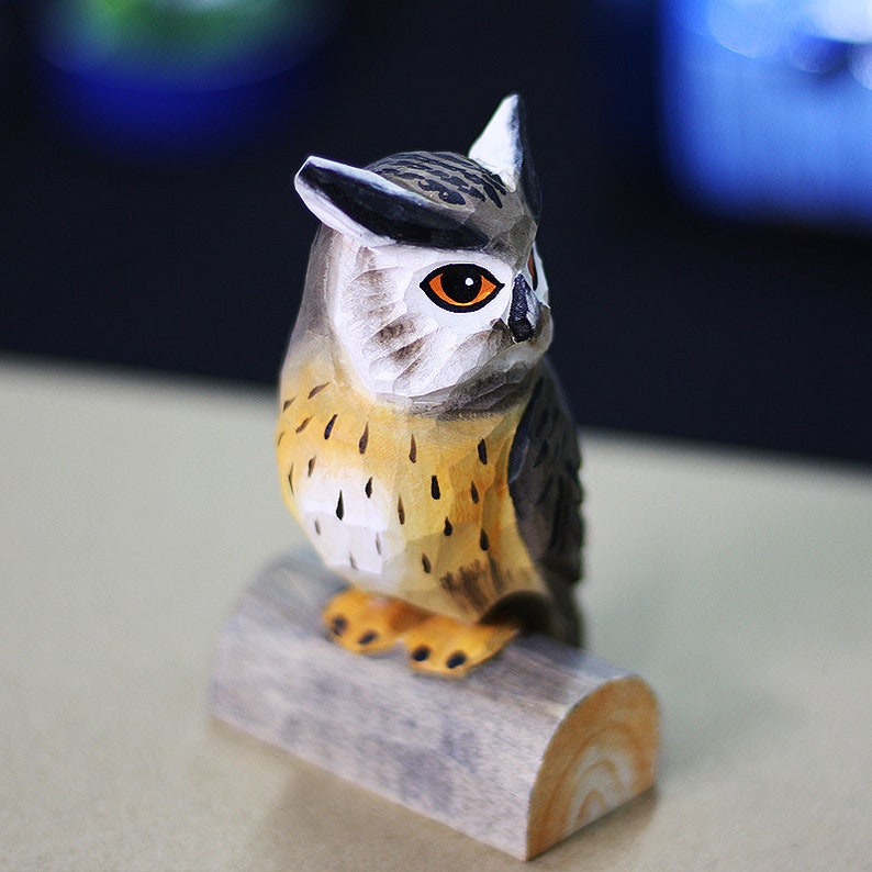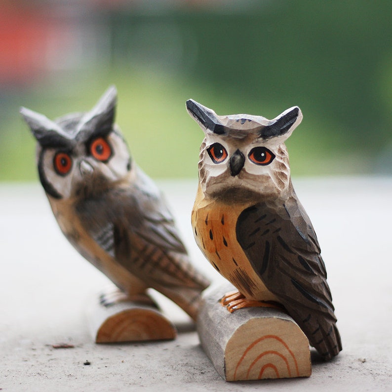 This unique and charming owl figurine is hand-carved from high-quality wood and makes for a delightful bookshelf decor or home decoration. The intricate details of the wood carving are a testament to the skill of the artisan who created it. The owl ornaments serve as the perfect owl gift for friends, family, or colleagues who love these majestic birds. As a handmade wooden owl, this statue is truly one of a kind and adds a touch of whimsy to any room. It is a must-have for all owl lovers, and those who appreciate exquisite craftsmanship in their home decor.