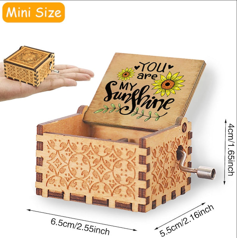【Classic Music Box】The cute music box is made of wood, compact and high-quality. The exquisite and elegant surface around the wooden music box is especially eye-catching on the table. The little music box will play a part of you are my sunshine when you turn the handle.