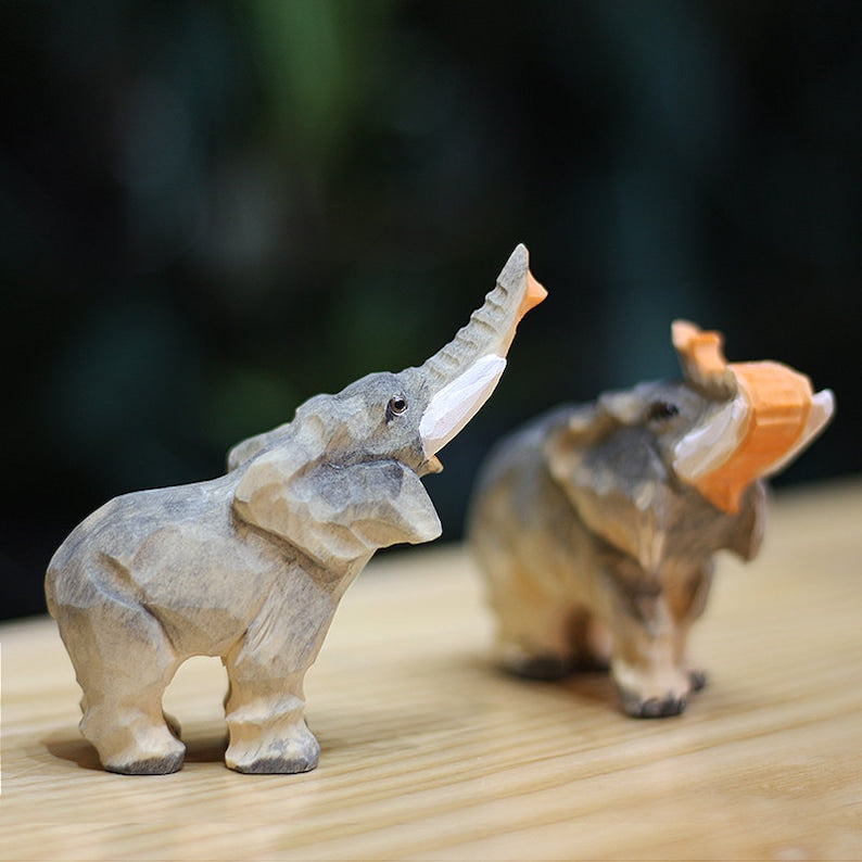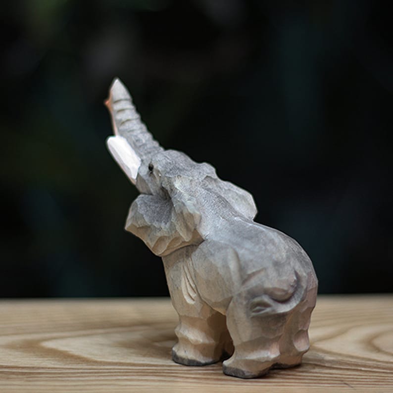 This exquisite handmade wooden elephant is a stunning piece of art, perfect for bookshelf decor or any part of your home. It's created with intricate wood carving, with talented hands carving each element of the figurine, making it a unique and one-of-a-kind piece. This elephant ornament is crafted with precision and care, leaving no detail unattended. It makes a beautiful elephant gift for animal lovers and collectors.