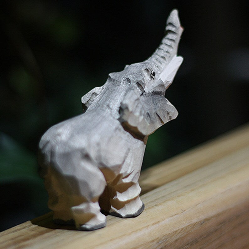 The hand-carved elephant figurine is an exceptional symbol of strength, wisdom, and good luck that can bring positive energy to your home. This beautiful wooden elephant ornament adds elegance and elegance to your décor. The elephant's meticulous and intricate design showcases a touch of elegance and beauty, carefully crafted to make it a decorative and visually appealing piece.