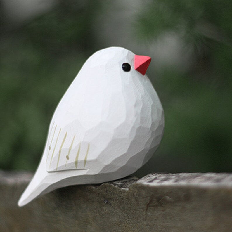 This exquisite product is a beautiful example of wood carving at its finest. Hand carved with intricate detail, this handmade wooden bird figurine is a stately addition to any bookshelf or home decor. These bird ornaments are the perfect gift for bird lovers and those who appreciate fine craftsmanship. With its Zebra Finch design, this bird figurine will add life and charm to any room. Whether you're decorating your home or looking for a thoughtful gift, this wood carving will surely impress. So give your home a touch of nature and elegance with this exceptional bird figurine.