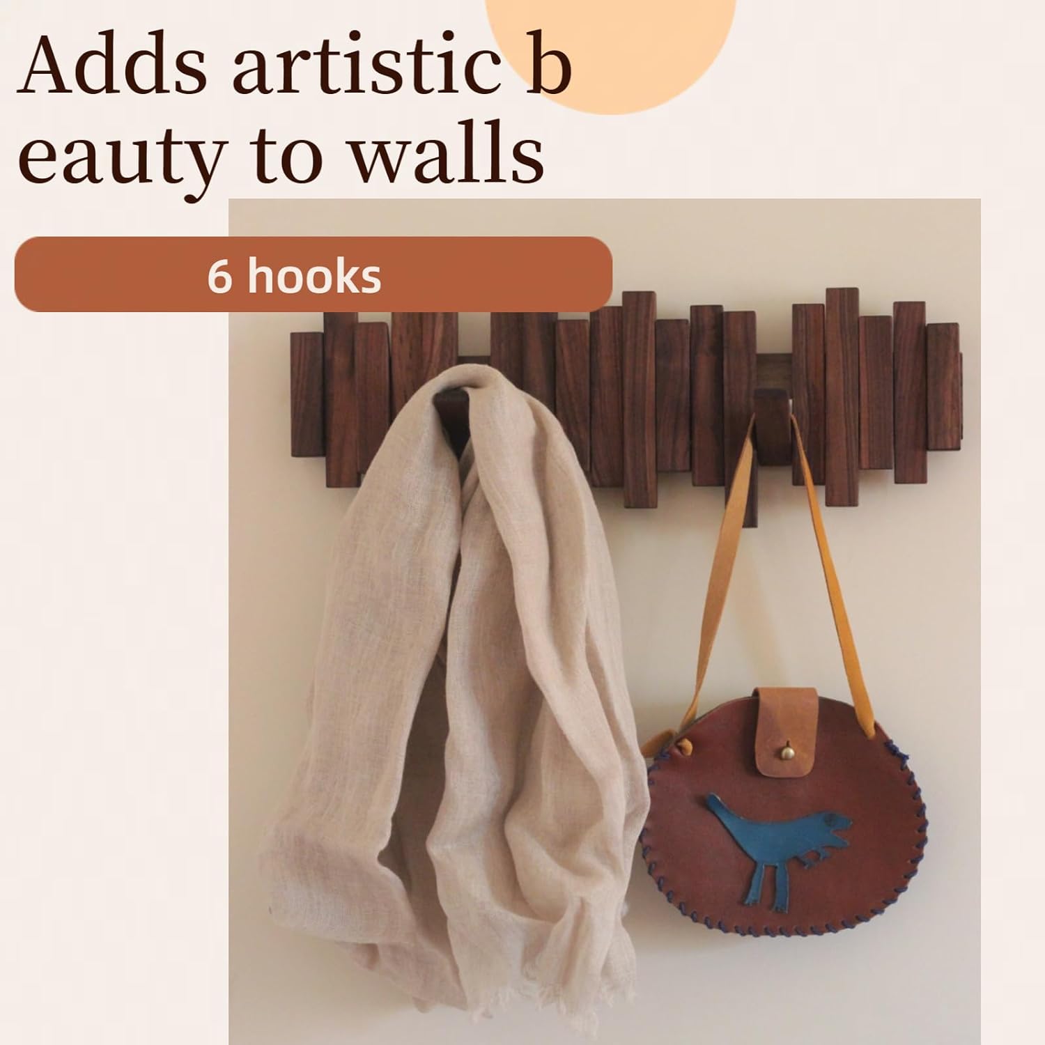 Enhance your entryway with our Natural Wood Wall Mounted Piano Coat Rack! 🎹 This handmade beauty features a unique flip-up design, ensuring the hooks stay up when not in use. The wooden piano keys are magnetically secured, preventing any accidental falls. 🍃