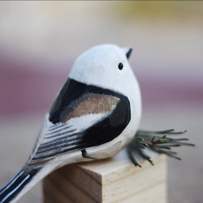 Add a touch of nature's beauty to your living space with this exquisite hand-carved wooden bird figurine. Made with love and skill, this bird ornament is not just a decorative piece but also a symbol of art and tradition. Crafted by using the ancient technique of woodcarving, this Aegithalidae bird is meticulously created to offer captivating details that showcase the rich textures and grains of natural wood. It can be a perfect addition to your Bookshelf decor or Home decor or can also be a unique birds gift for your loved ones. Bring home the essence of the wilderness that evokes peace and serenity with this handmade wooden bird figurine.