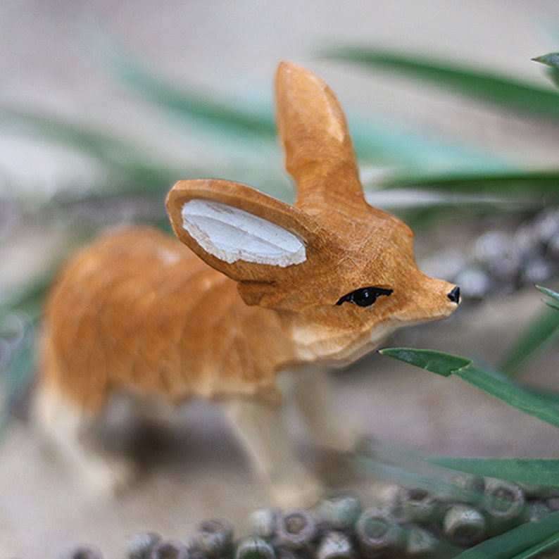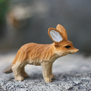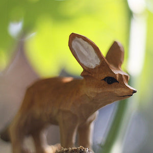 Add an element of nature to your bookshelf decor with our exquisite hand-carved wooden fox figurine. A perfect gift for fox lovers, this adorable fennec fox ornament is a unique piece of home decor that is expertly crafted by skilled artisans. Made from superior quality wood, our handmade wooden fox is a standout piece that exudes warmth and charm. Its lifelike features make it an ideal addition to your living room, bedroom or any space that needs a touch of woodland magic. This fox figurine is sure to capture your heart with its intricate wood carving and is bound to spark joy every time you look at it.
