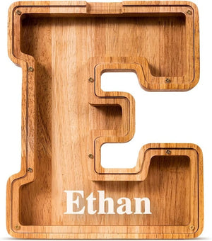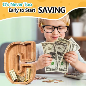 Personalized Wooden Letter Piggy Bank - A unique gift idea for kids.